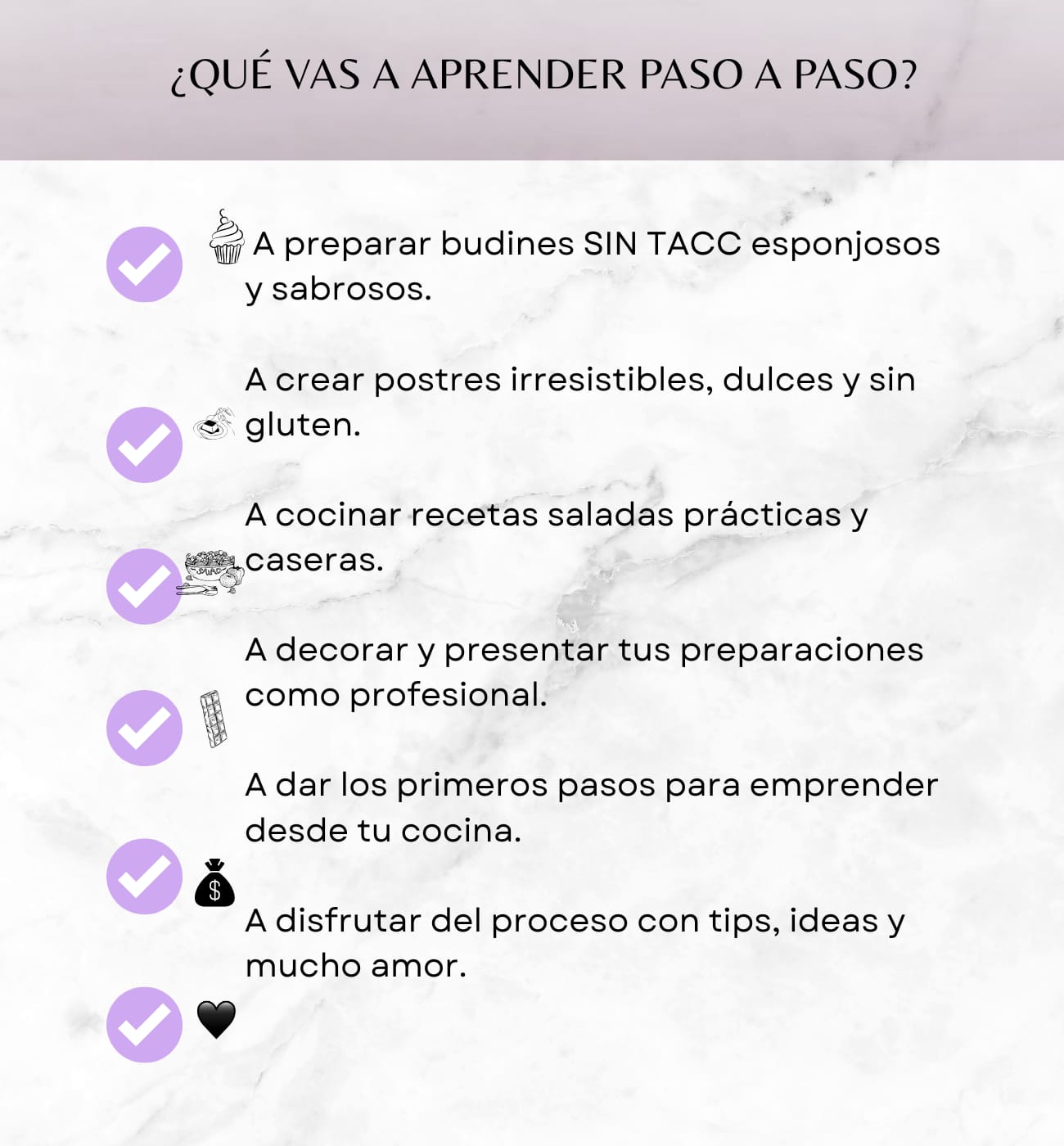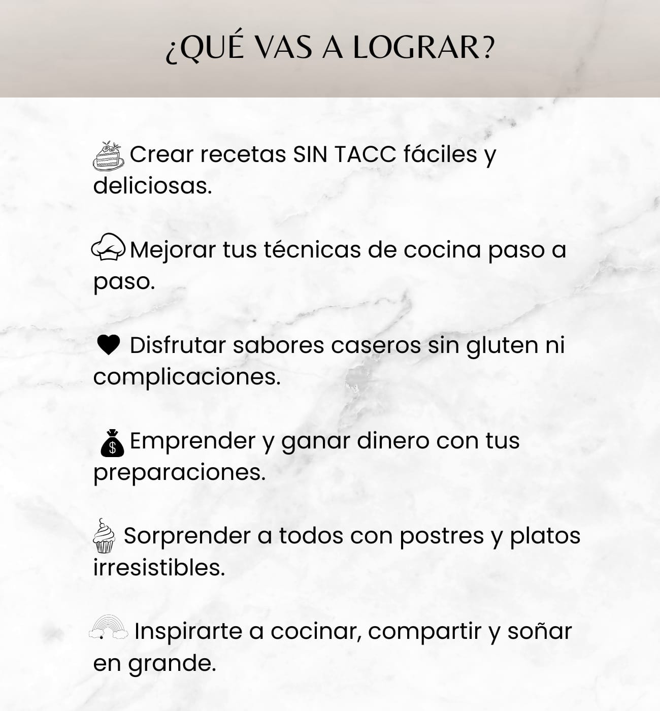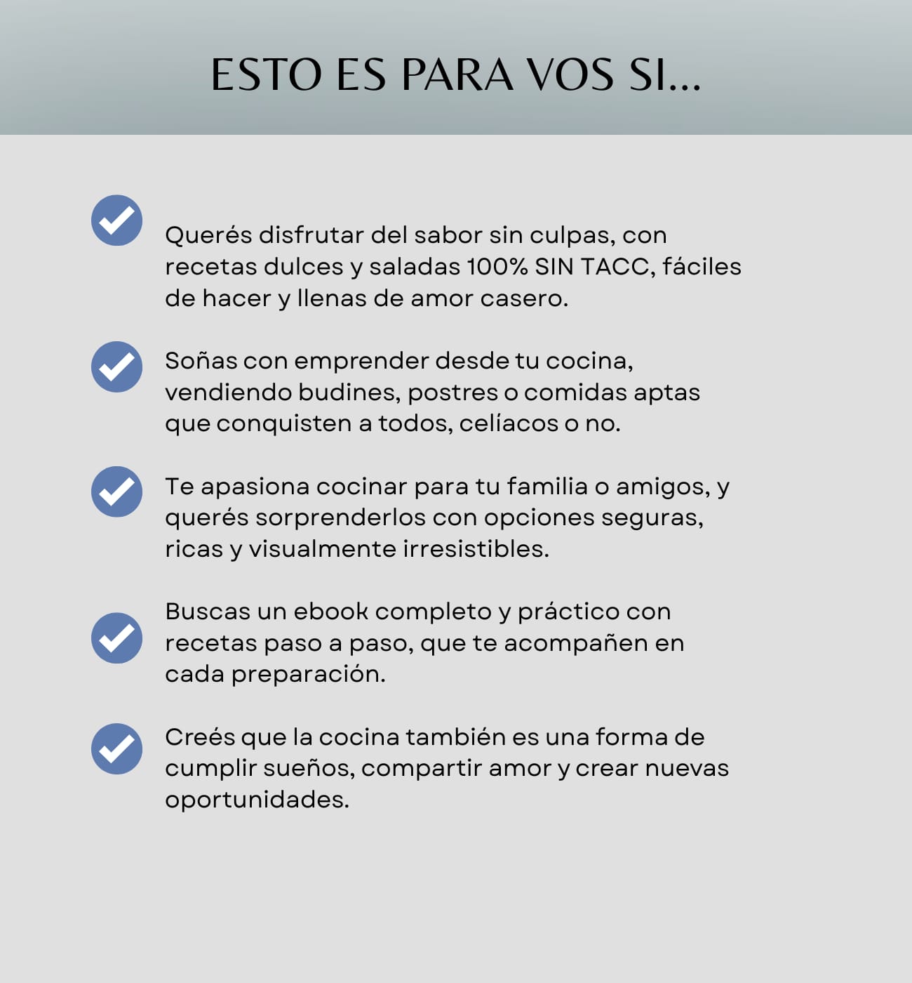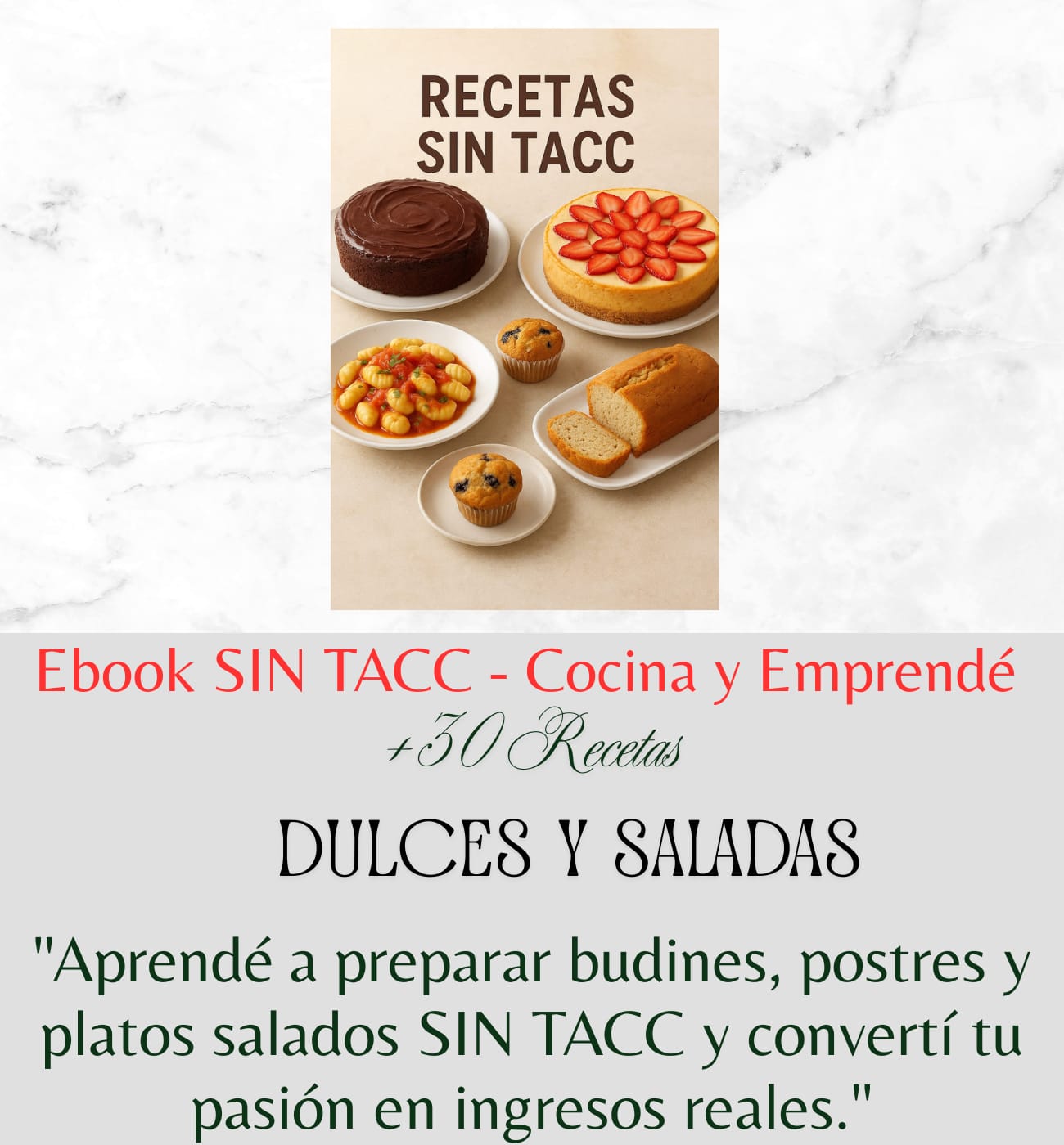 Vas aprender a preparar budines, postres y comidas saladas SIN TACC, con ingredientes simples y resultados deliciosos. Además, descubrirás tips de cocina, conservación y consejos para emprender con tus propias recetas.